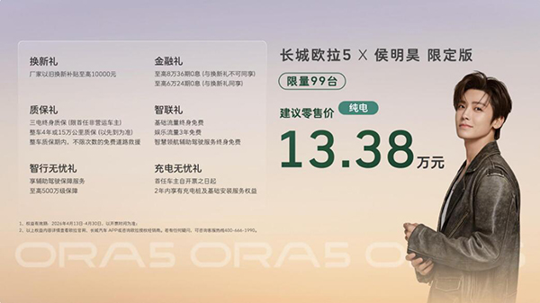 长城欧拉5限定版纯电版限量99台,建议零售价13.38万元